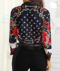 The Fit: Blouse runs slightly small. Not very much stretch.